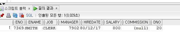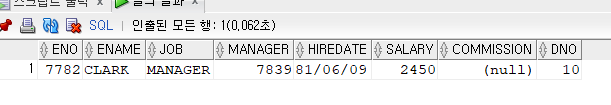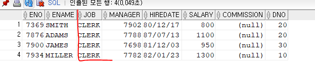 직업이 CLERK인 것만 출력이된다.