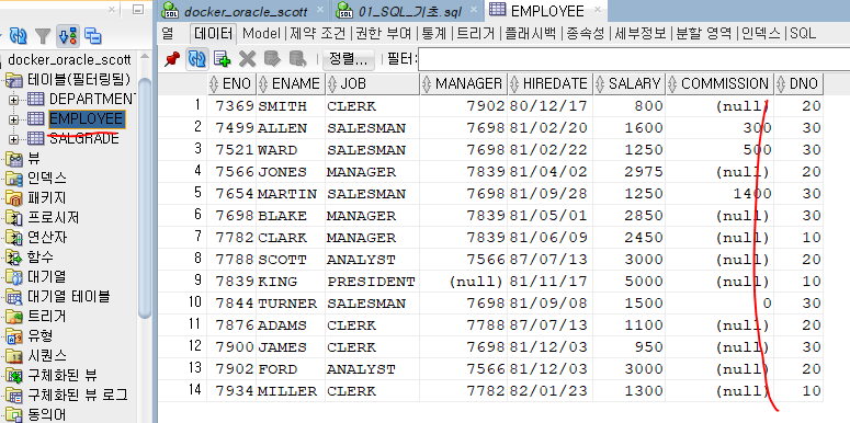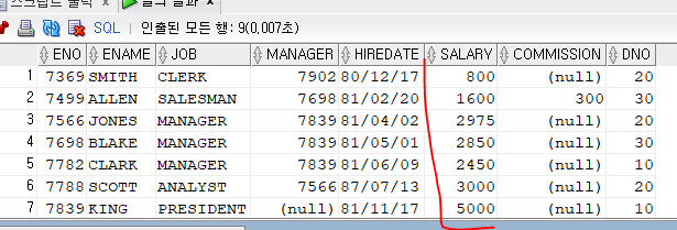 NVL(컬럼, 0) => 컬럼에 NULL 값은 0으로 변경됨