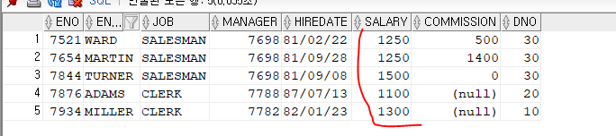 예를들어 월급이 1500 이상인 사원만 조회하고 싶은 경우가 있다. 이때 where을 사용하여 조건을 줄 수 있다.