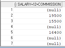 SELECT ENAME, SALARY * 12 + NVL(COMMISSION, 0) FROM employee;