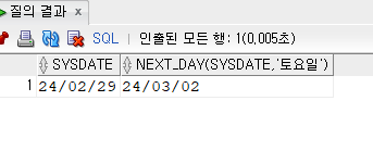 SELECT SYSDATE, NEXT_DAY(SYSDATE, '토요일') FROM DUAL;