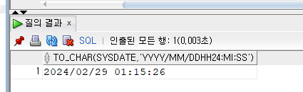 YYYY-MM-DD HH24:MI:SS 참고로 다음 날짜 형식은 24시간을 초단위까지 나타낼 수 있는 형식이다.