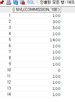 SELECT NVL(COMMISSION, '100')