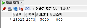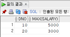 여기선 특이한게 그룹함수와 컬럼을 같이 사용할 수 있다. 대신 반드시 GROUP BY에 해당하는 컬럼만 사용해야한다.