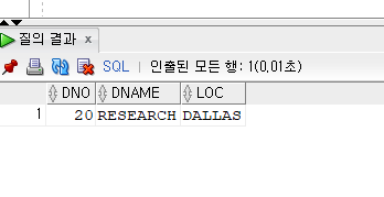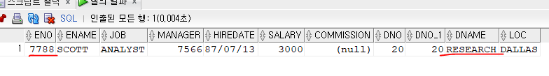 -- 예제1) 사원번호가(ENO) 7788 인 사원의 부서명은(DNAME) 뭘까요?