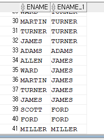 SELECT EM.ENAME, MA.ENAME FROM EMPLOYEE EM, EMPLOYEE MA