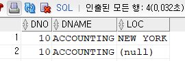 10 번 부서의 값을 'ACCOUNTING'에서 'PROGRAMMING'으로 바뀌었다.
