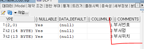 COMMENT ON COLUMN DEPT.LOC IS '부서위치';