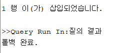 데이터를 삽입했을때 이걸 확정해야지 DB에 영구 저장된다. 그 전에는 삽입 취소를 할 수 있는데 이때 사용하는 명령어가 ROLLBACK이다.