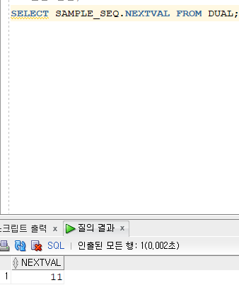 SELECT SAMPLE_SEQ.NEXTVAL FROM DUAL;
