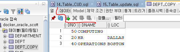 데이터 탭에서 수정을 할 수 있다. +모양이 추가, X가 삭제 체크표시가 COMMIT이다.