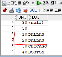 이렇게 하면 괄호안에서 조회된 값이 DNO가 10일때 LOC의 값이 된다.