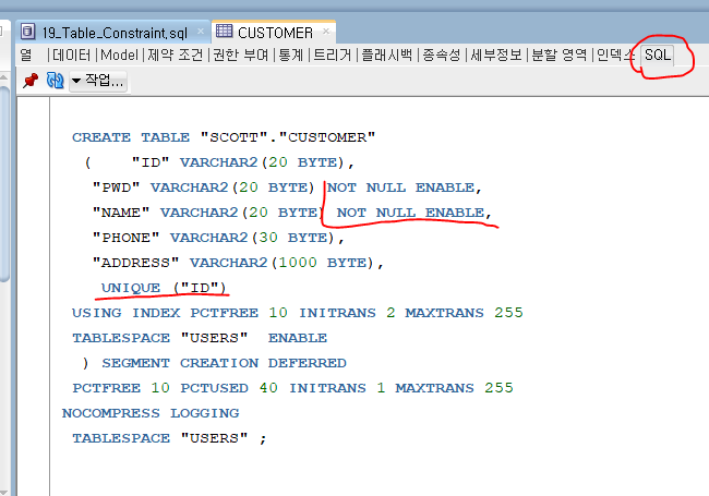 어떤 테이블에 어떤 제약조건을 걸었는디 명령어로 확인 할 수 있다.
