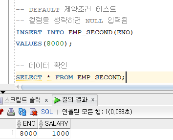 ,SALARY NUMBER(7,2) CONSTRAINT CK_EMP_SECOND_SALARY CHECK(SALARY>0) -- 양수값만 넣기