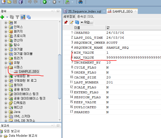 여기서 만든 시퀀스를 확인할 수 있고, 최대 최소값을 지정하지 않으면 다음과 같이 설정된다.