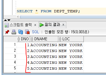 INSERT INTO DEPT_TEMP(DNO, DNAME, LOC)