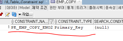 ALTER TABLE EMP_COPY -- 기본키 제약조건 부여