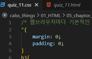 브라우저 종류가 여러개인데 이 들은 기본 margin과 padding이 다르기 때문에, 이 두개를 초기화 해주고 시작하는 것이 좋다.