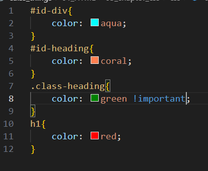우선순위가 id에서 class선택자로 바뀌어 class선택자의 색이 정해진 것을 볼 수 있다.
