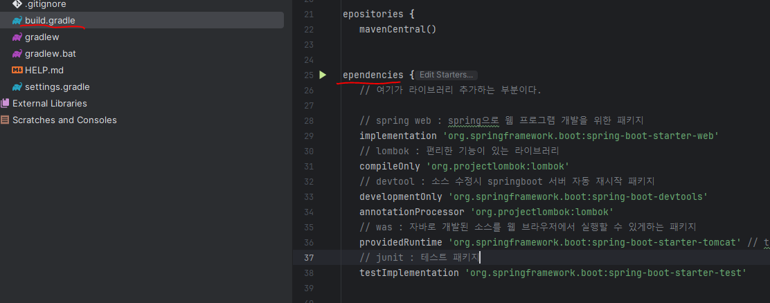 위 경로로 가져온 라이브러리를 확인 할 수 있다. 우리가 가져온 라이브러리를 볼 수 있다. 여기서 tomcat은 자바 프로그램을 웹부라우저에서 돌아가게 해준다. 자바 언어를 해석해서 웹브라우저에 뜨게 해준다. was의 일종이고 spring boot에는 기본적으로 내장되어있다.