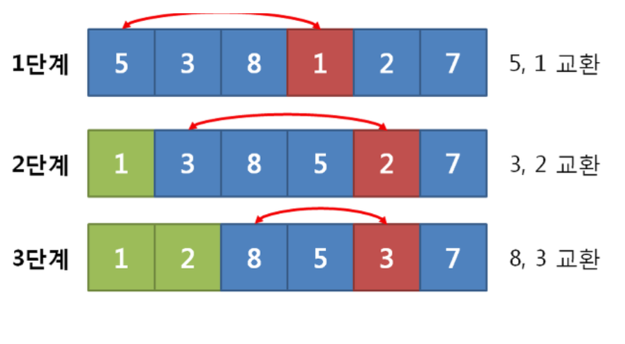(3) ... 배열의 끝까지 (1) ~ (2) 를 반복한다.
