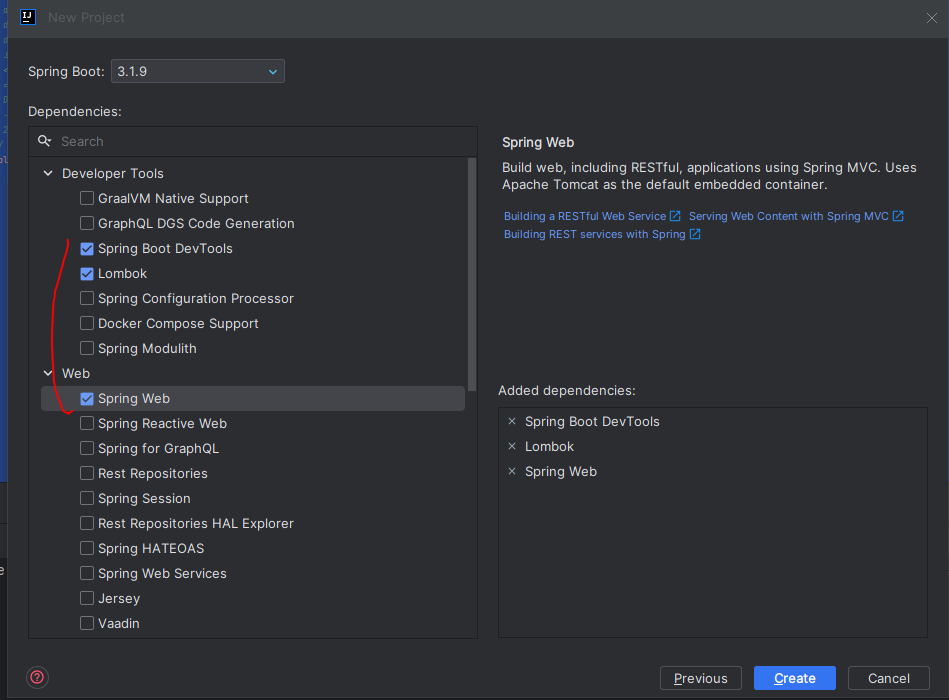 인강에서는 spring사이트에서 설정을 했는데 여기서는 spring initializr을 이용해서 설정한다.