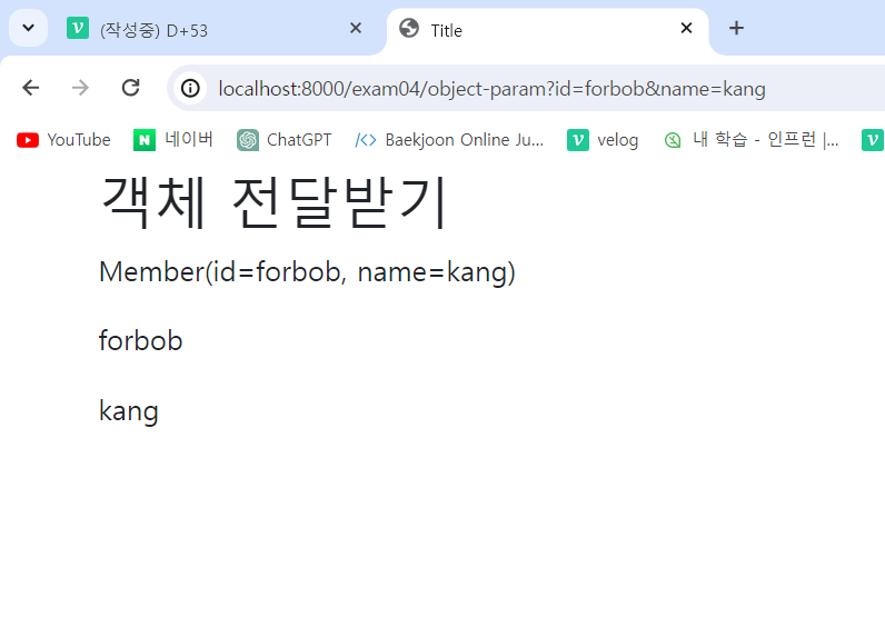 addAttribute함수를 이용할때와 같이 ${}를 이용해 member객체를 적어주기만 하면 객체가 전달받아서 사용된다.
