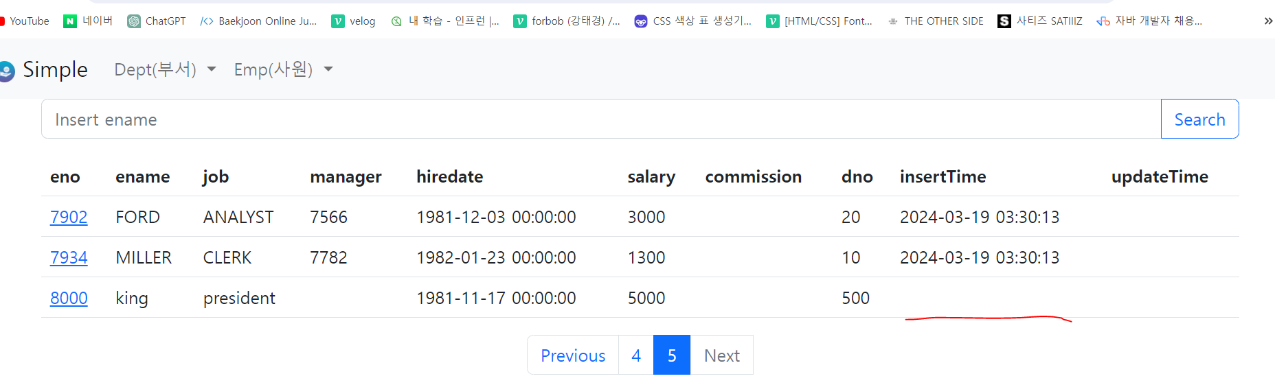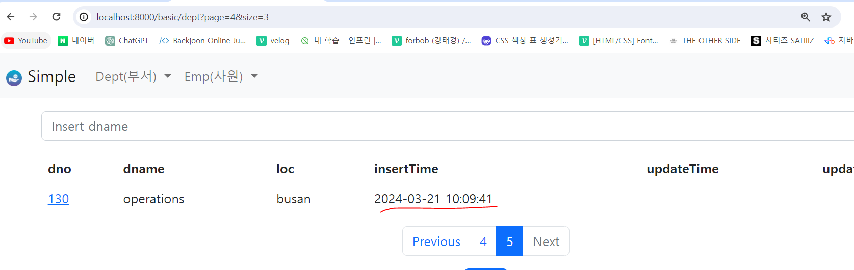 저장은 잘 됐지만 시간이 나오지 않는다. 처음 insertTime변수를 지정할때 시간이 저장되게 변수값을 지정해주지 않았기 때문이다. 시간 값을 입력해주자.