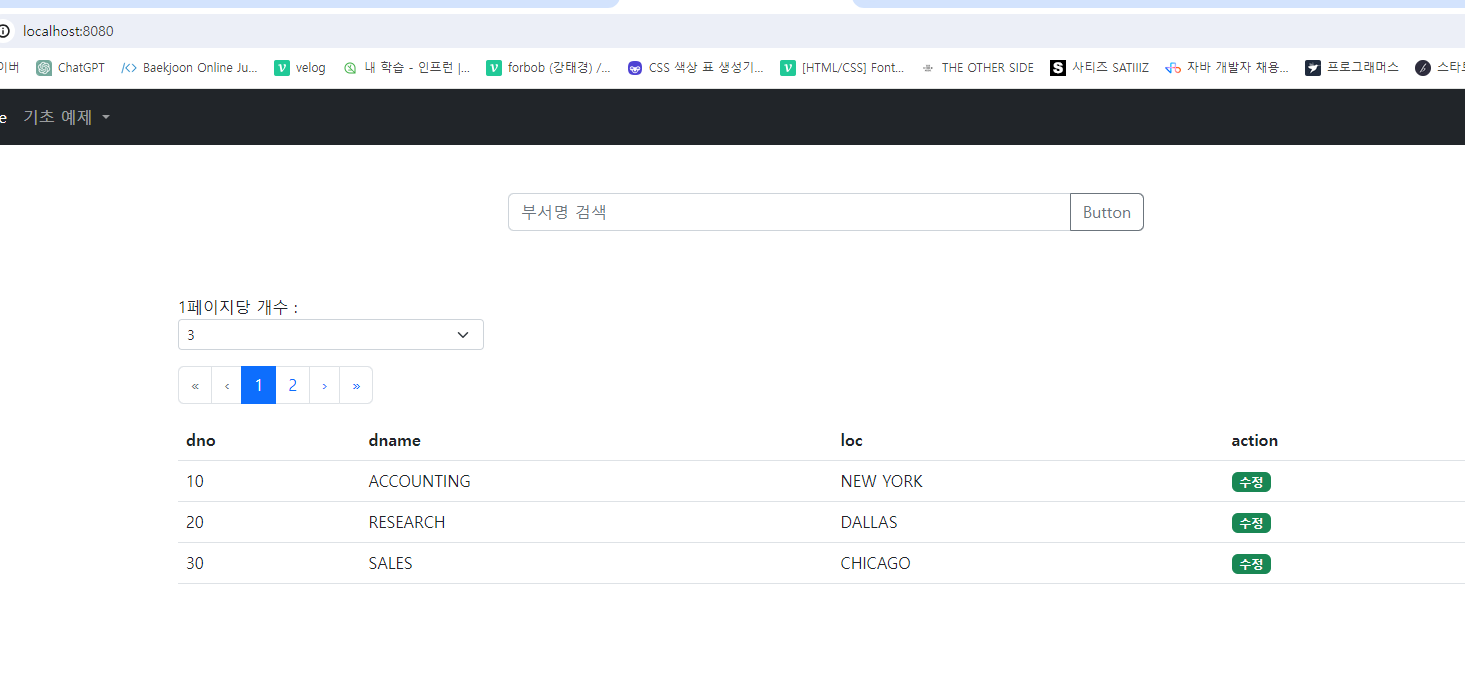 검색 버튼을 누르면 retrieveDept이 실행되어 input에 입력된 값에 해당하는 데이터를 보여주게 된다.