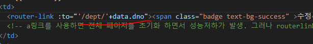 DeptList.vue파일에서 수정 버튼을 눌렀을때 수정 페이지가 열리게 링크를 달아줄 것이다.