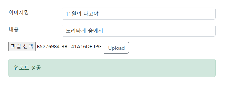 업로드에 성공하면 그림과 같이 "업로드 성공"이라는 메세지가 뜬다.