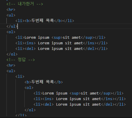 그래서 ul안에 ol을 넣어서 만들어야 했다.