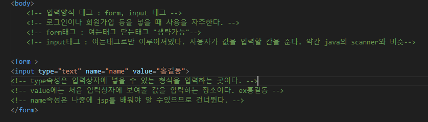 홍길동이라는 이름이 안떠서 왜그러지 했는데 value에 홍길동을 입력해야 이름이 나오는 거였다