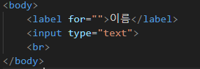여기서 라벨을 클릭해서 커서를 깜박이게 하고 싶으면 for의 값과 input의 id값을 일치시켜주면 된다.