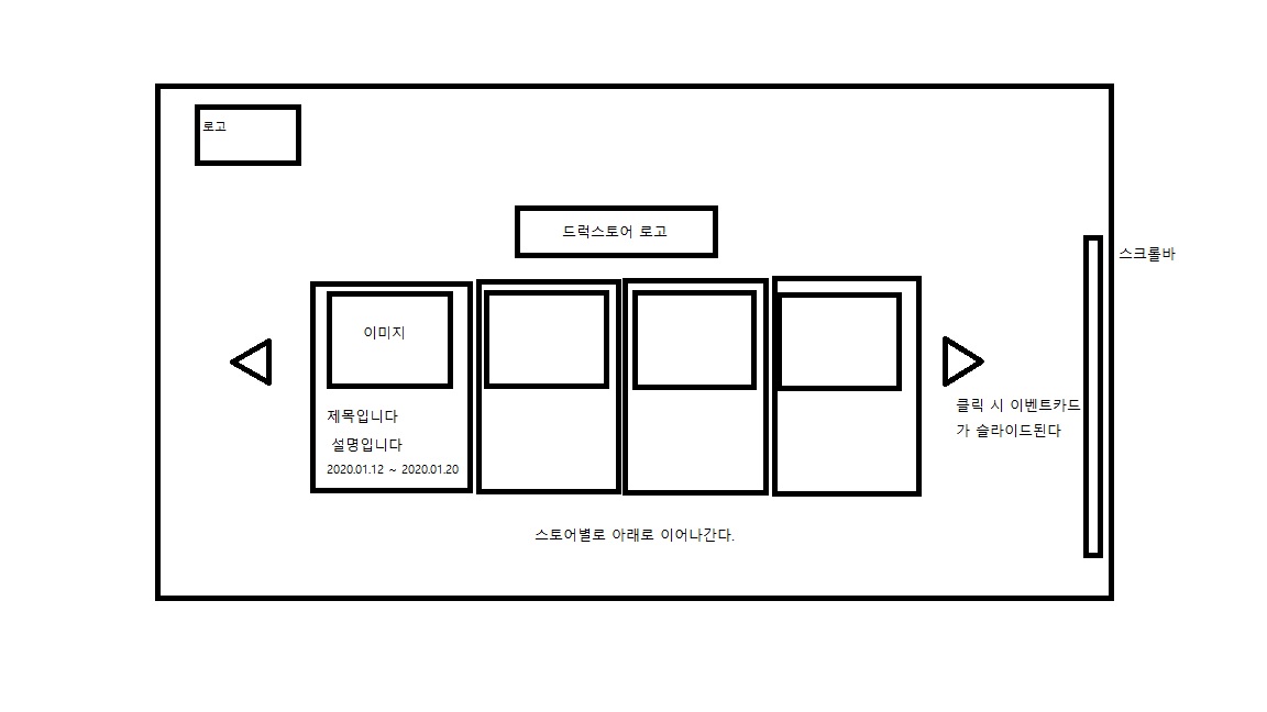 드럭스토어별로 영역을 지정하고 그 안에 이벤트 슬라이드를 제작하여 많은 정보를 담아내려고한다.