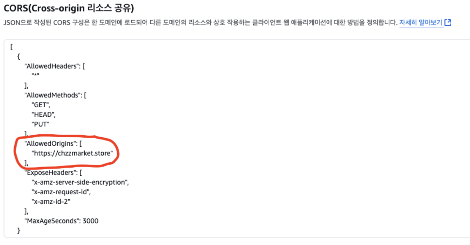 컨텐츠 저장 위치인 S3로 가서 원본 확보가 가능하도록 CORS 세팅을 해주자