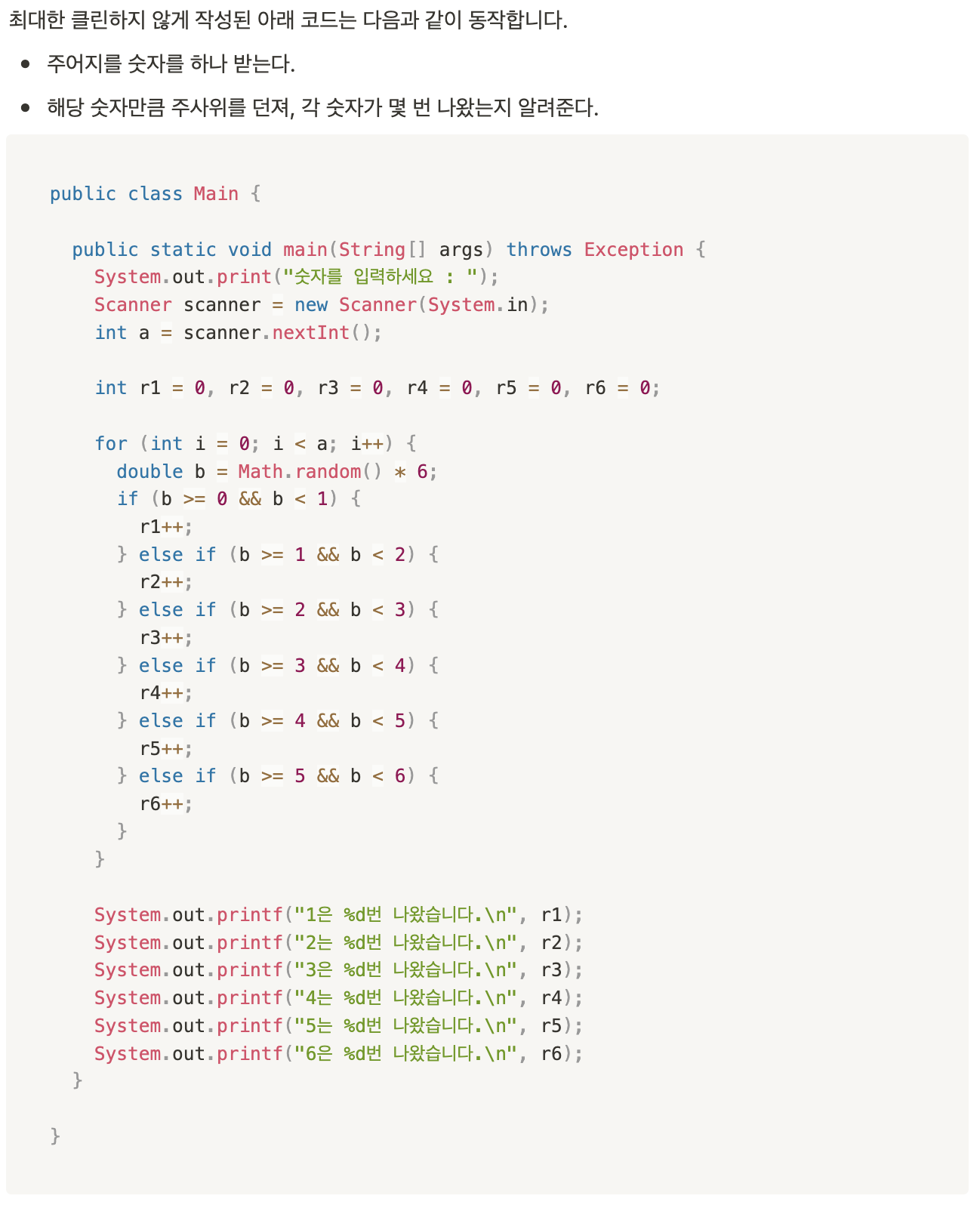 // 사용자로부터 주사위를 던지는 횟수를 입력받는다.