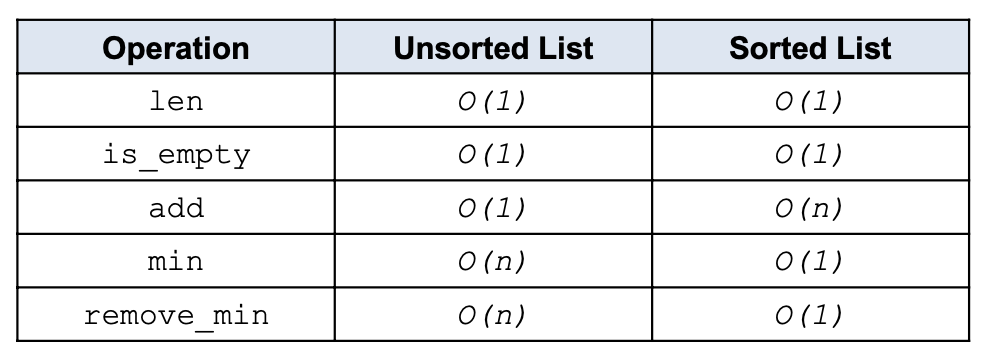 - Heap 기반 구현 통해 insertion, removal 시 실행시간 단축