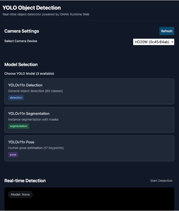 이번 R&D에서는 React 환경에서 YOLOv11n 객체 인식 모델을 ONNX 형식으로 변환하고, 웹 브라우저에서 실시간으로 비디오 스트림에서 객체를 감지하는 기능을 구현했습니다.