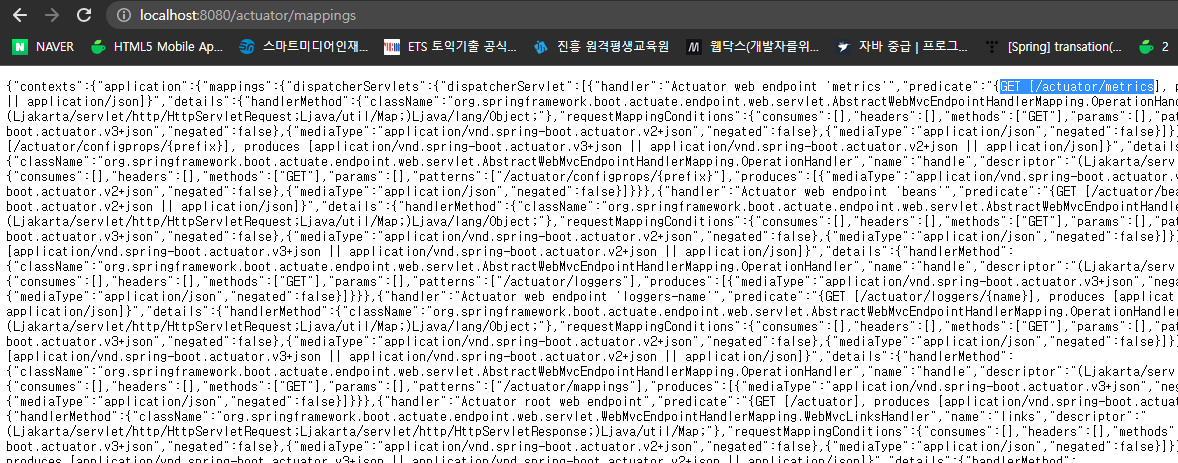 이처럼 actuator를 활용하면 서버의 여러 상태정보를 확인할 수 있다.