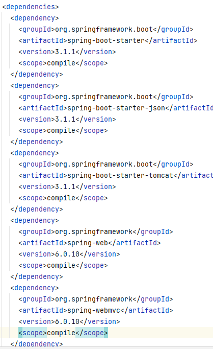 아래처럼 json, tomcat, web 등 web appliction 제작에 필요한 의존성을 이미 정의하고 있다.