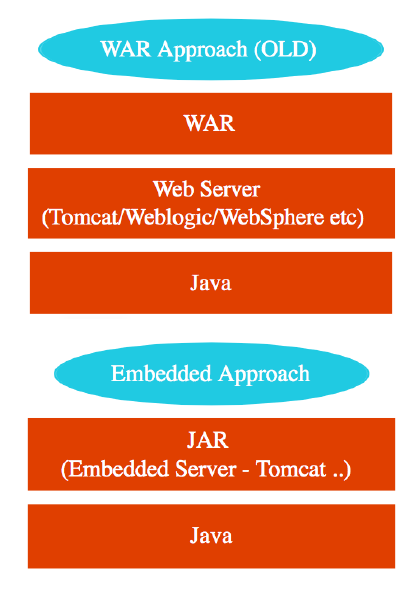 하지만 스프링 부트를 활용하면 Jar파일 생성하면 서버가 내장(기본적으로 tomcat)되어 있어 더 간단하다.