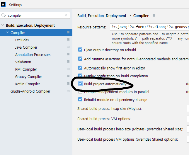 - 인텔리제이를 사용하는 경우 아래와 같이 추가적인 설정이 필요하다.