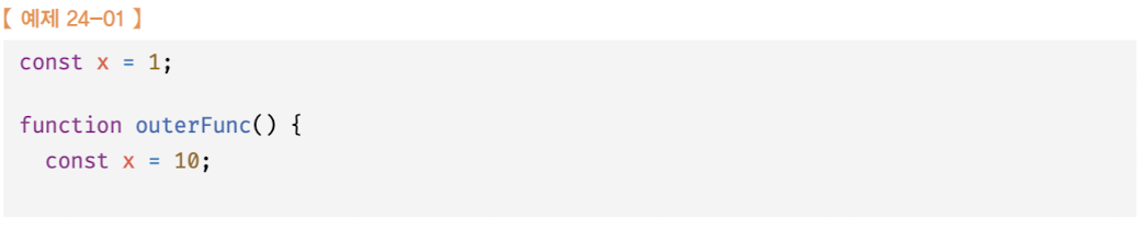 함수의 변수에 접근할 수 없다.이 같은 현상이 발생하는 이유는 자바스크립트가 렉시컬 스코프를 따르는 프로그래밍 언어이기 때문이다.