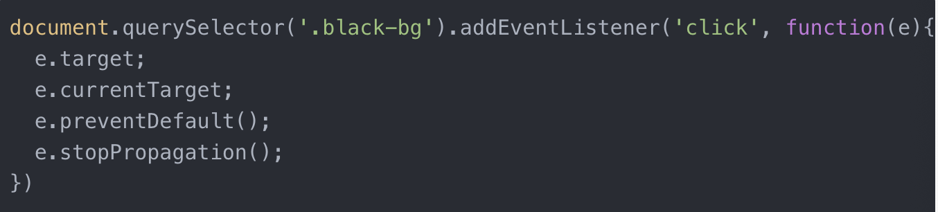 e.stopPropagation() 실행하면 내 상위요소로의 이벤트 버블링을 중단해줌