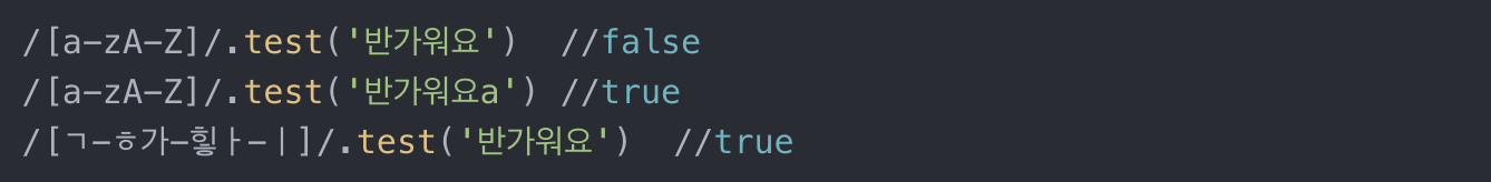 /정규식/.test('정규식으로 검사해볼 문자')를 쓰면 된다.