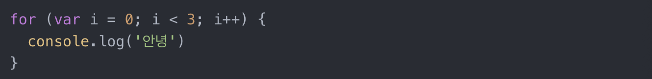 i를 0부터시작해서 / i에 1씩 더해가면서 반복실행해라 / 근데 i<3까지