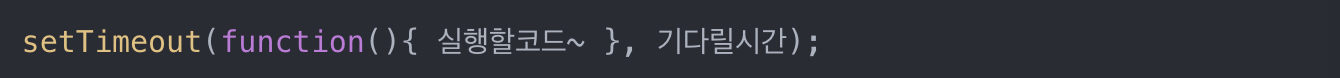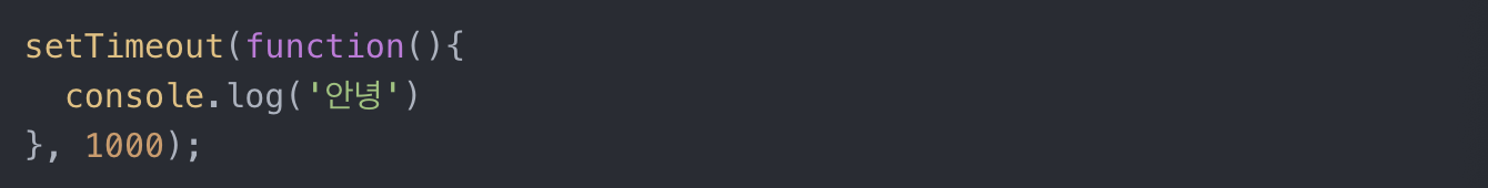 위처럼 적으면 1초후에 콘솔창에 '안녕'이 뜬다.
