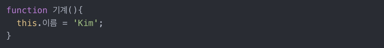 this.이름 = 'Kim' 이건