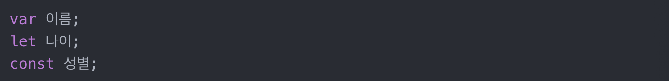 이렇게 var,let,const 키워드를 이용해 변수를 만들겠다고 선언할 수 있다.